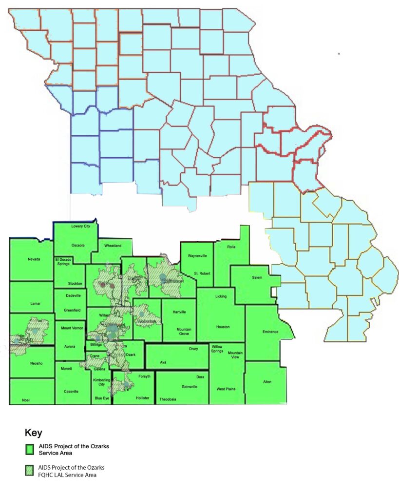 APO serves 29 counties in Southwest Missouri. Also, need to denote FQHC counties.